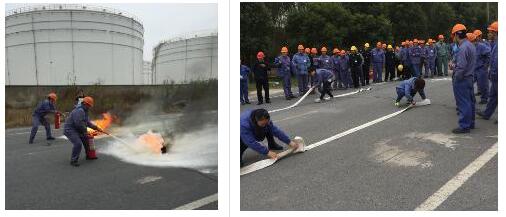 本次消防活动打破了以往演习由一线部门独唱的局面,商务部、行政部的同事也参加了四人组的灭火器接力赛;开票中控室的姐妹们在两人组的消防水带对接中也大显身手。这是一次真正全员参加的消防活动。